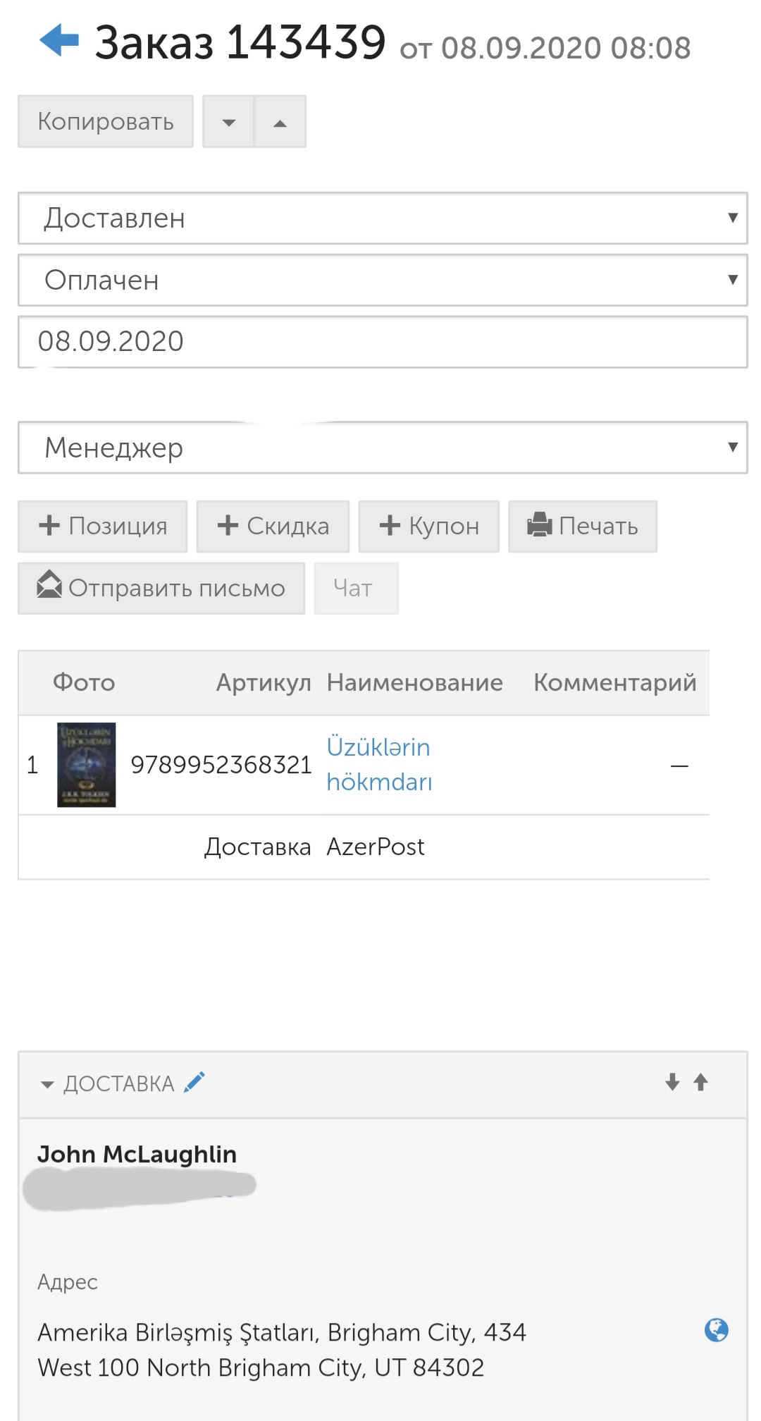 Заказал книгу 22 марта 2020 года. Заказ прибыл 30-го марта. Со скидкой купил за 14 манатов(книга + доставка 2 маната). Если честно переживал на счёт качества книги из за цены, так как везде эта книга продаётся за 20 манатов как...