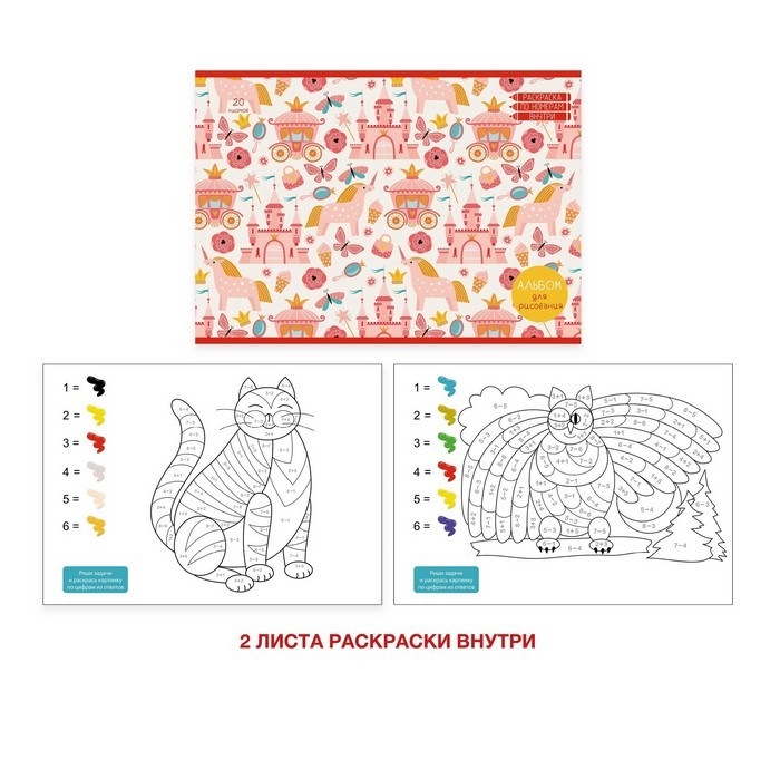 Альбом для рисования на скрепке, А4 формата. Внутренний блок - 18 листов плотностью 110 г/м2 и два листа с раскрасками по номерам. Увлекательная игра для ребенка, чтобы раскрасить картинку целиком придется постараться! Альбом для рисования.