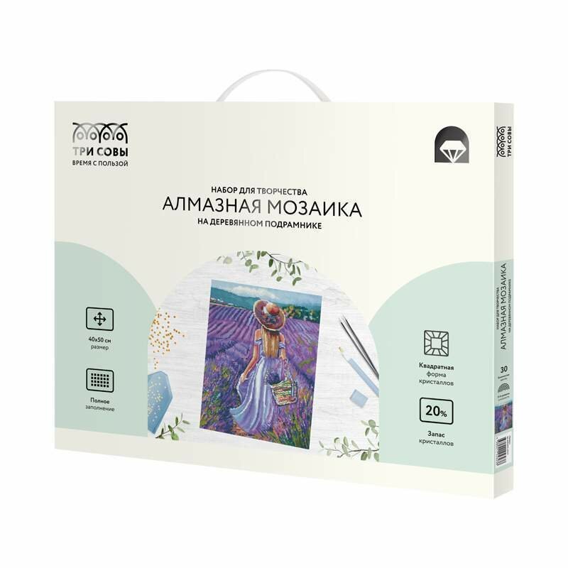 Алмазная мозаика ТРИ СОВЫ "Прованс", 40*50см, холст на деревянном подрамнике, картонная коробка. Создание картины из алмазной мозаики «ТРИ СОВЫ» – увлекательное занятие, которое дарит умиротворение и гармонию, развивает усидчивость, аккуратность и внимательность. Вы сможете создать своими руками оригинальную, мерцающую на свету картину.