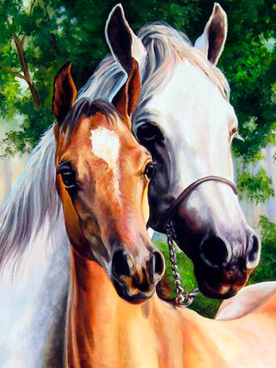 Алмазная мозаика"Две лошади", полная, 30х40, LE090 ТМ Цветной, размер 300х400, мм В набор для творчества входят: 1) Холст на деревянном подрамнике и жесткой основой. Яркая печать схемы на холсте. Защитная прозрачная пленка. Безопасный клеевой слой. 2) Пронумерованные пакетики с мозаикой. Мозаика круглая. Каждый камень имеет алмазную огранку. Размер мозаики 2,5мм - 2,8мм. Зип-пакеты в комплекте. 3) Подробная книжка инструкция. Лист со схемой выкладки мозаики. Подарочная коробка с ручкой и кратким описанием набора. 4) Специальный пластиковый карандаш для захвата мозаики. Клей-липучка для карандаша. Пластиковый пинцет для альтернативного способа выкладки. Лоток для мозаики. Крепление на стену. Алмазная вышивка или картины мозаикой. Набор для создания картины мозаикой позволит создать прекрасный подарок или украшение для интерьера. Каждый камень мозаики имеет алмазную огранку, что позволяет готовой работе переливаться цветами.