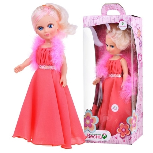 Анастасия Весна 3 - кукла с выразительными глазами, пушистыми ресницами и роскошными бело-розовыми волосами. На кукле нарядный комплект одежды: нарядное платье из шёлка, туфельки. Из аксессуаров: боа из нежно-розового меха и плетёный ремешок. Производитель оставляет за собой право изменения цветовой гаммы одежды и волос куклы, цвет глаз может варьироваться. Игровые возможности куклы: при нажатии на звуковое устройство, вставленное в спинку, кукла произносит фразы. Элементы кукольной одежды: застежки, головной убор, обувь способствуют развитию мелкой моторики. Прекрасные длинные волосы, похожие на натуральные, можно завивать, расчёсывать и укладывать в разные причёски, меняя образ куклы. Продуманная конструкция куклы позволяет её сажать, ставить на ножки, переодевать. Эта кукла подходят для сюжетных игр и разнообразных игровых действий ребёнка. Высота 42 см. Тело куклы пропорционально и гармонично: руки и голова выполнены из эластичного приятного на ощупь винила, а туловище и ноги из пластмассы.