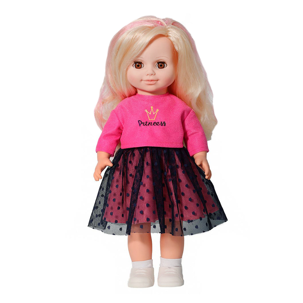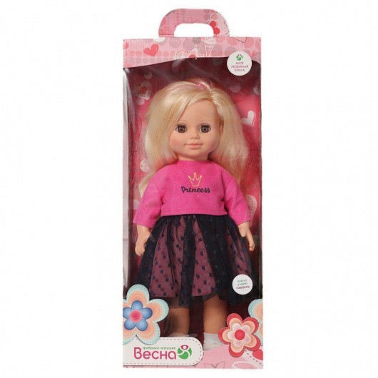 Куклу Анна Яркий стиль 2 отличает новый, непохожий на других образ. Это очаровательная кукла-девочка с открытым взглядом, пушистыми ресницами, обаятельной улыбкой и роскошными волосами. • В комплект одежды входит: яркая кофточка и юбка из сетки контрастных оттенков. На груди наклейка «Принцесса». На ногах носочки и туфельки. • Игровые возможности куклы: прекрасные длинные волосы, похожие на натуральные, можно завивать, расчёсывать и укладывать в разные причёски, меняя образ куклы. При нажатии на звуковое устройство она произносит фразы, побуждающие к действию. Она умеет закрывать глазки, её можно укладывать спать. Продуманная конструкция позволяет её легко усаживать, ставить на ножки, переодевать. • Технические характеристики: кукла полностью выполнена из современного материала винила. Длина волос 24 см. Глаза закрывающиеся. Высота 42 см. Кукла озвучена.