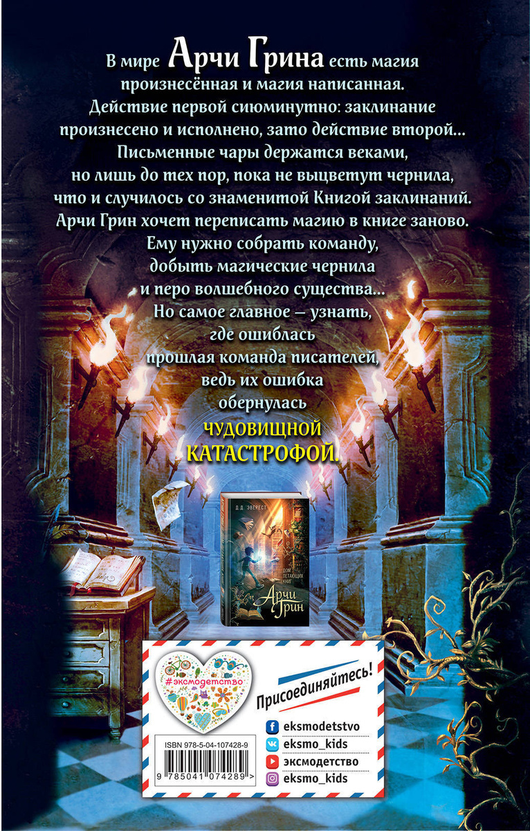 Арчи Грину предстоит написать магию. В самом прямом смысле — сесть за стол, взять перо, обмакнуть его в чернила и начать писать на страницах старинного гримуара. Дело в том, что книжные чары держатся, пока не выцветут чернила. Но даже волшебство подвластно времени, и уже едва можно разобрать, что начертано в великой Книге заклинаний. Но человек, умеющий писать магию, нужен не только светлым силам. На Арчи открыта безжалостная охота, а надеяться он может только на себя, на друзей... и на магию.