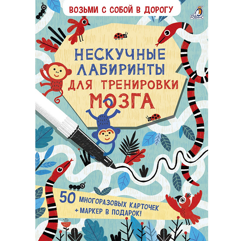 В набор входит 50 двусторонних многоразовых карточек с лабиринтами на любой вкус: сказочные и космические, c животными и роботами, двусторонние лабиринты, лабиринты с ключами и много-много других. Задания разного уровня сложности, поэтому они подойдут как младшим детям (от 5 лет), так и школьникам и даже взрослым! Прохождение лабиринтов отлично развивает пространственное мышление и восприятие, внимательность, воображение, память и мелкую моторику. Для занятий с набором подходит любой фломастер на водной основе, который легко удаляется со специальной поверхности карточек. Стирай линию, если ошибся, и начинай рисовать свой путь заново!