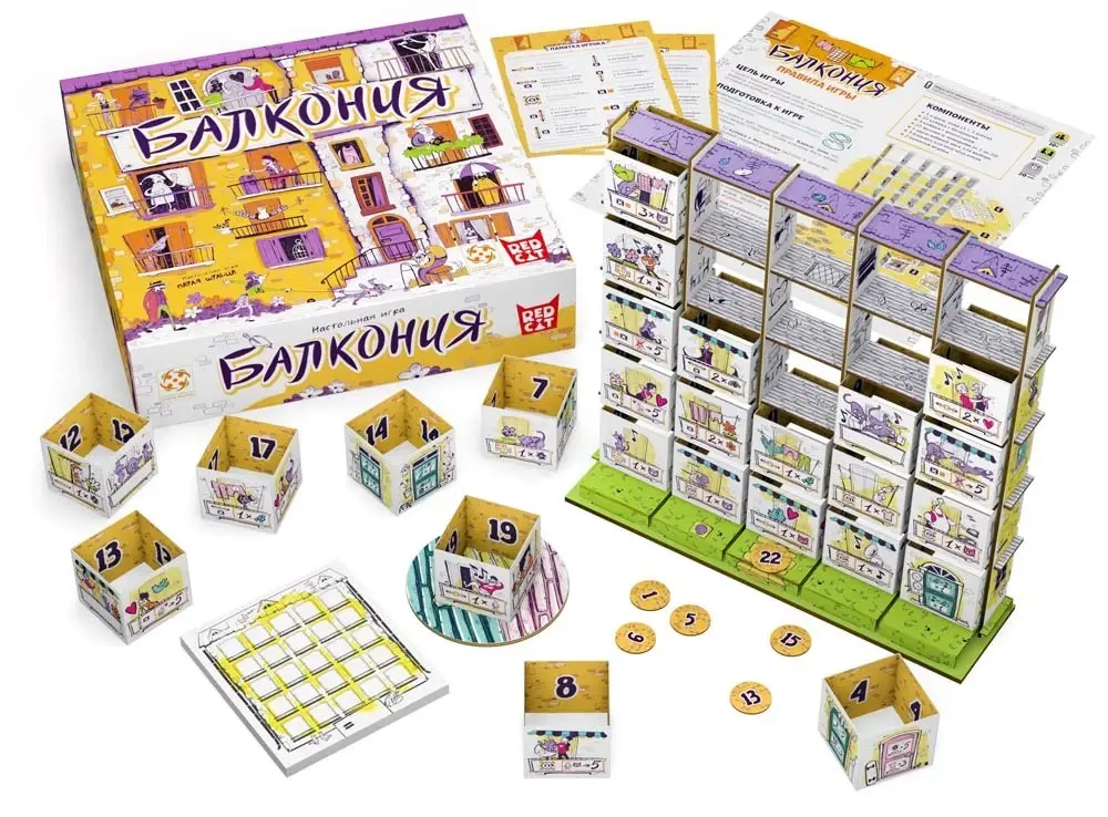 «Балкония» — лёгкая тактическая игра для двоих с необычными трёхмерными компонентами, позволяющими создавать гармонию внутри одного жилого дома.