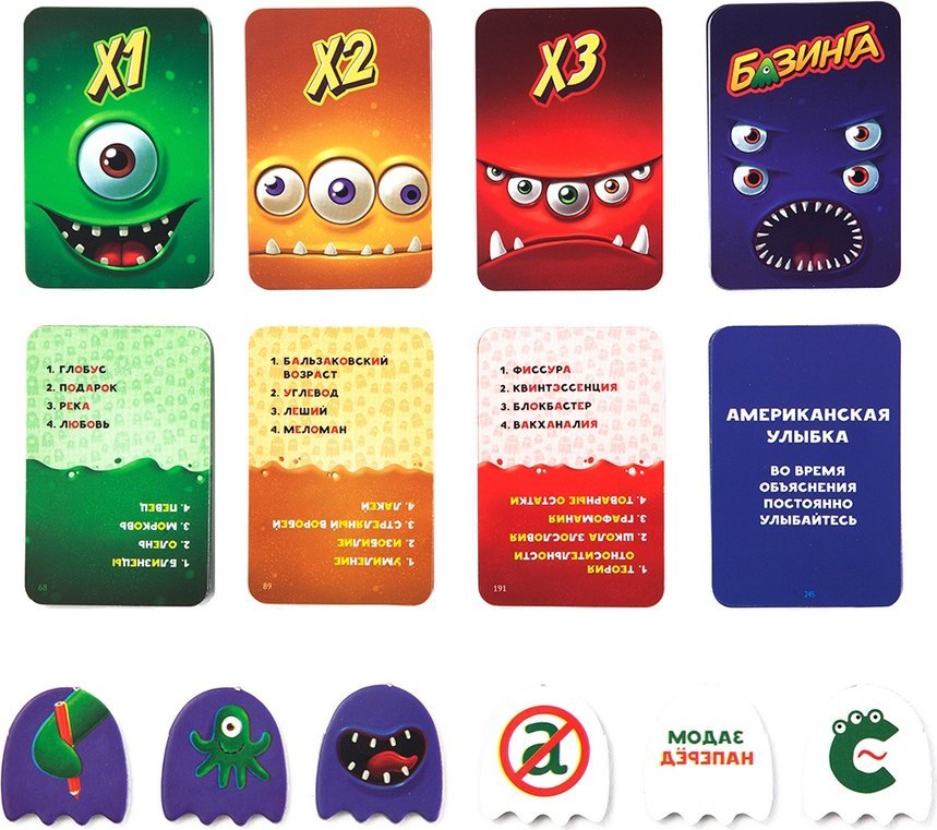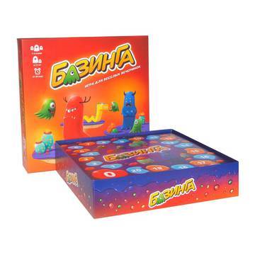 Представь, что ты пришел на вечеринку, но никого не знаешь. Чувствуешь себя как в заколдованном лесу и пытаешь найти собеседника. Мы воспроизвели эту ситуацию в настольной игре «Базинга». Теперь каждый за игровым столом лишен возможности произнести нужное слово привычным способом. Придется пользоваться подручными средствами. Но есть и хорошие новости! У вас целых шесть способов донести нужную информацию. Самое приятное, что стараться угадать заданное слово будут все игроки. В «Базинге» нет команд, участвовать должны все без исключения. Как же командный дух, спросите вы. Он никуда не делся! Двигаться к выходу из страны «Непонимания» будут жетоны с цветами двух игроков. Побеждает пара игроков, которые лучше всего понимают друг друга!