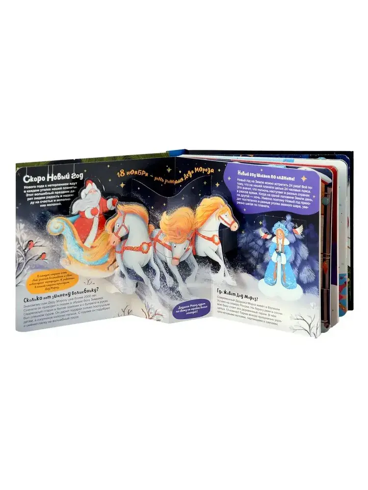 Энциклопедия «Атлас Нового года» — это красочная книга, которая откроет для малыша удивительный мир обычаев народов мира. Маленькие читатели узнают о разнообразных традициях празднования Нового года и Рождества: от ёлочек и подарков до особых блюд и обрядов. Яркие иллюстрации, объёмные POP-UP конструкции и увлекательные окошки помогут погрузиться в праздничную атмосферу разных уголков планеты. А доступный язык сделает информацию лёгкой и интересной для любого малыша. Читайте книжку вместе с вашим ребенком — проводите время интересно и с пользой!