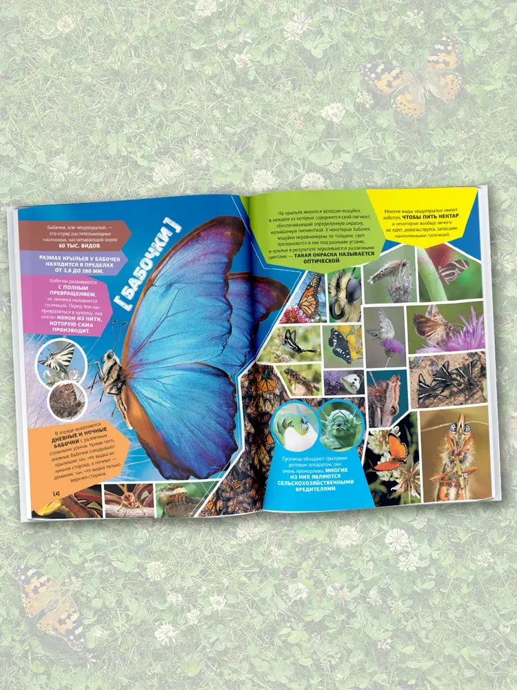 Насекомые — древнейшие обитатели нашей планеты, очень причудливые и загадочные существа, и вы убедитесь в этом, когда прочитаете эту книгу. Здесь нет больших описательных статей и научной классификации — лишь короткие факты и уникальные фотографии бабочек и стрекоз, жуков и кузнечиков, пчел и муравьев, а также известных недругов насекомых — пауков. И несмотря на это, юный читатель получит полное представление о том или ином насекомом, ведь приведенная здесь информация не только интересная, но и вполне познавательная, а фотоснимки, сделанные крупным планом, дают возможность рассмотреть их со всех ракурсов и в мельчайших подробностях.