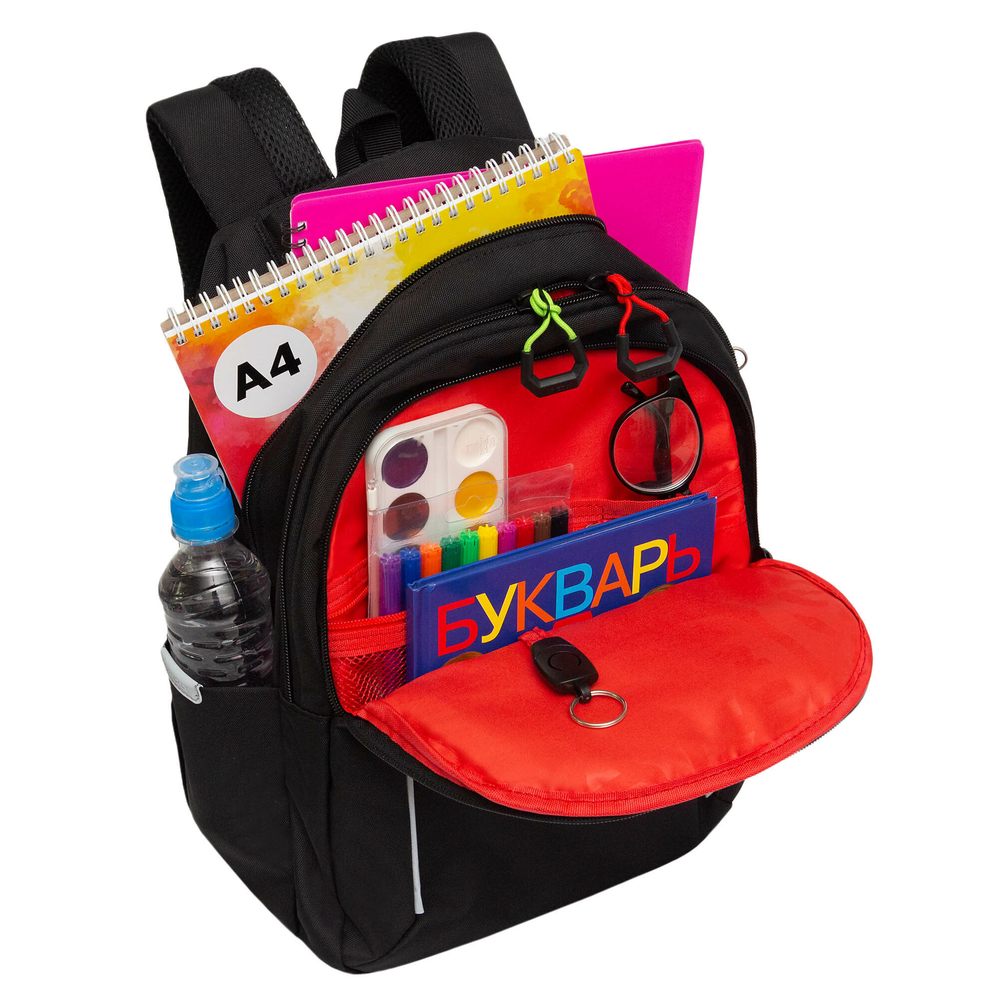 Рюкзак разработан для учащихся начальной и средней школы. Анатомическая дышащая спинка и удобные широкие лямки позволяют равномерно распределять нагрузку на спину и плечи. Также лямки снабжены дополнительной нагрудной стяжкой, чтобы снять и равномерно распределить нагрузку поясничного отдела и для того, чтобы рюкзак удобно и надежно держался на зимней объемной одежде. Материал портфеля с водо- и грязеотталкивающей пропиткой позволяет без труда очистить легкие загрязнения влажной тканью, при загрязнениях средней степени рекомендуется стирка в холодной воде температурой 30 градусов без отжима. Рюкзак очень хорошо оснащен, имеет три отделения для учебных пособий форматом А4, помогает организовать пространство внутри: отделить учебники от рабочих тетрадей, а также позволяет удобно и аккуратно хранить канцелярские принадлежности. В основном отделении есть карман для планшета или небольшого ноутбука 13". Дополнительное переднее отделение сумки оснащено съемным держателем для ключей и тремя карманами.