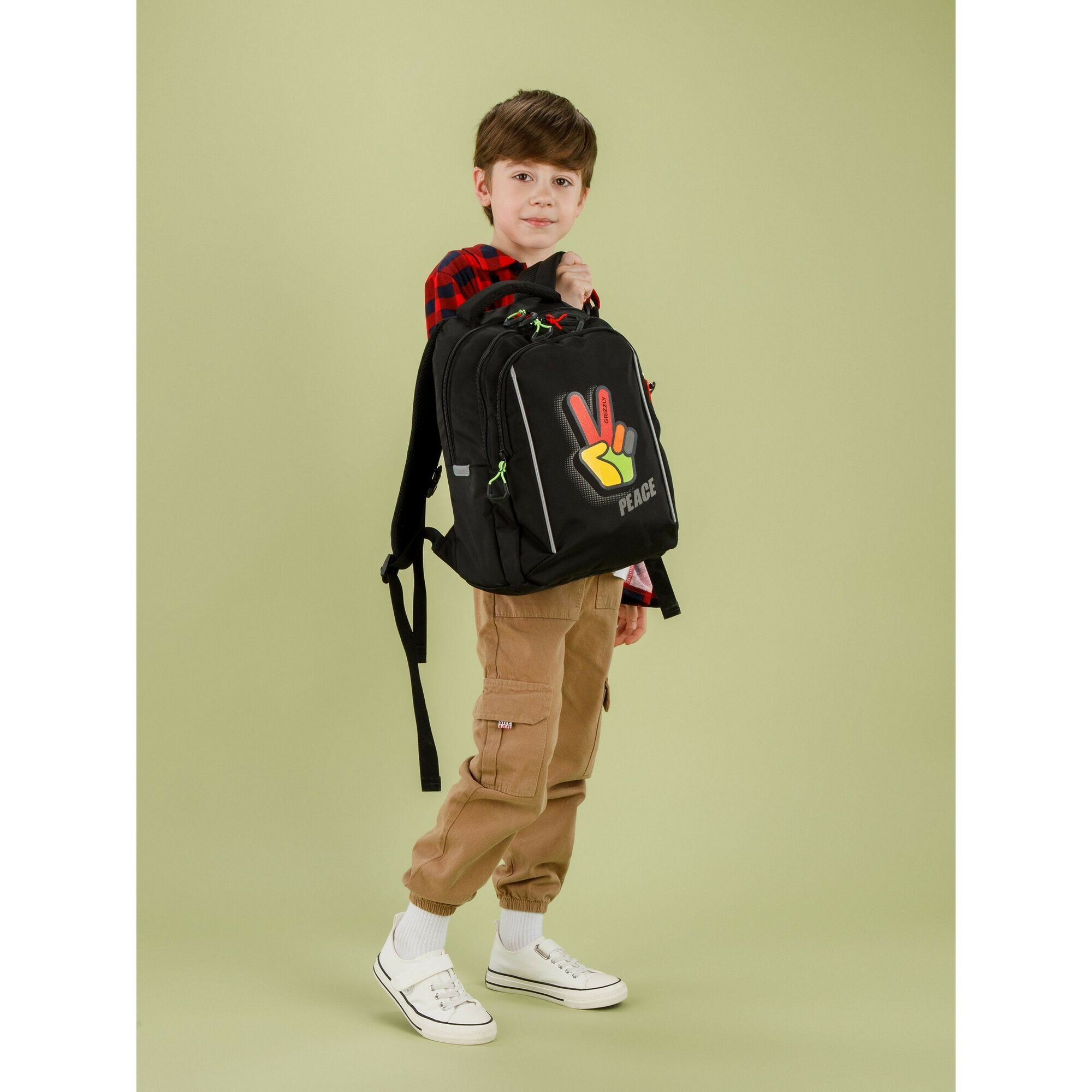 Двунаправленные реверсные молнии с брендированными пуллерами на замках позволяют легко открывать и закрывать портфель в любую удобную сторону для ребёнка.