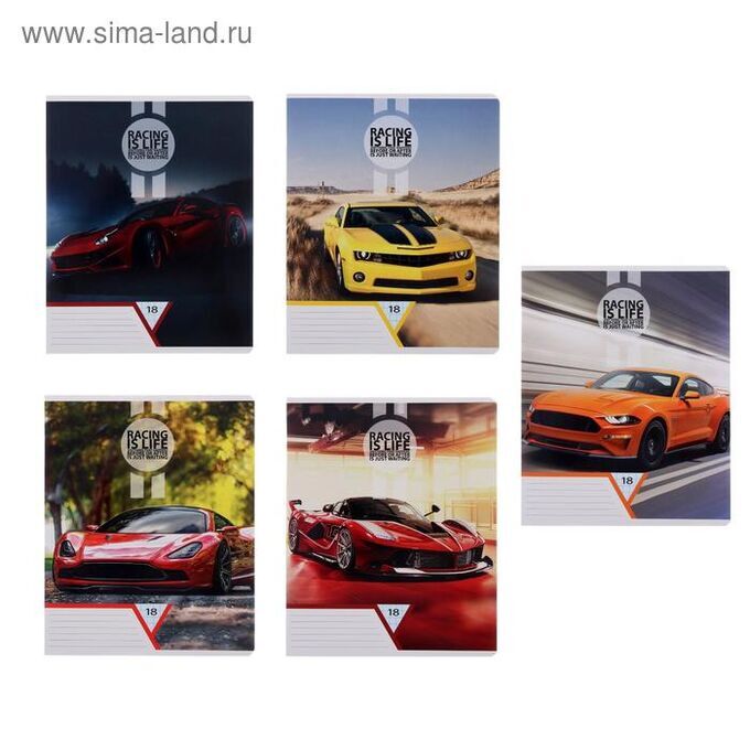 Полиграф Принт / Тетрадь 18 листов в клетку «Стильные авто», обложка мелованный картон, УФ-лак, блок офсет, МИКС