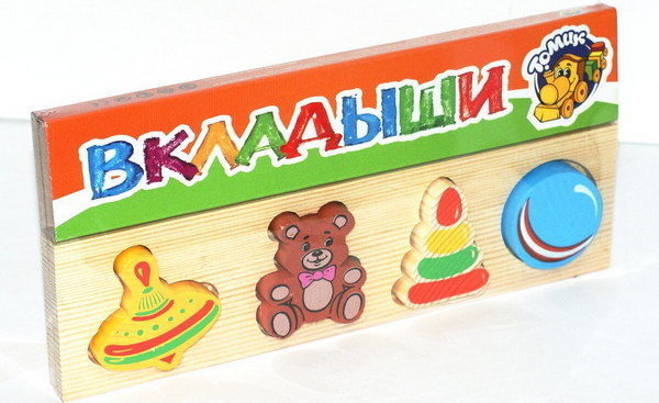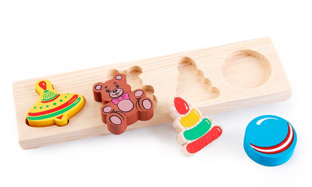 Пазл для малышей Томик "Игрушки"- это деревянная основа, в которой вырезано несколько углублений. В углубления вставляются фигурки-вкладыши, точно подходящие по форме и размеру. Красочные фигурки изображают любимые игрушки: юла, мишка, пирамидка, мячик. Задача ребенка - найти для каждой фигурки свое место. Малыш довольно быстро способен это освоить. Вкладыши прекрасно развивают логическое мышление, мелкую моторику, память, учат различать цвета, формы и размеры фигурок.