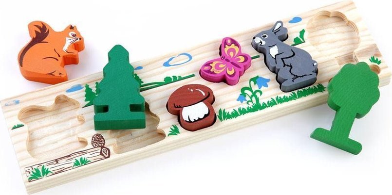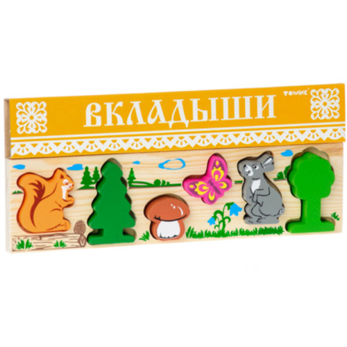 Рамка-вкладыш "Лес" представляет собой деревянную дощечку с углублениями различной формы. В углубления вставляются фигурки: белочки, зайчика, грибочка, бабочки, елочки и лиственного дерева. Игра развивает усидчивость, аккуратность, пространственное мышление, умение узнавать и различать форму плоских фигур и их положение на плоскости. А также поможет вашему малышу развить мелкую моторику, точность, целенаправленность движений.