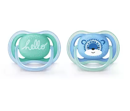 Körpələr üçün nəzərdə tutulmuş Philips Avent əmziyi körpələri sakitləşdirməyə kömək edir. Tamamilə elastik tibbi dərəcəli silikondan hazırlanmış davamlı bir dizayn. Xüsusi əyri, ürək formalı qalxan körpənizin üzünün təbii əyrilərinə uyğunlaşmaq üçün nəzərdə tutulmuşdur. Onun kiçik burnuna dəymədən maksimum rahatlıq təmin edir. Əmzik\ Пустышка ultra soft, 6-18 мес., 2 шт, для мальчика hello