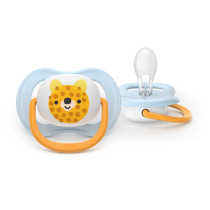 Extra-large airholes let baby's skin breathe Holes in the shield ventilate your baby's skin, keeping it drier for ultimate soothing comfort. Orthodontic teat designed for natural oral development Our orthodontic teats are designed using soft silicone to support natural mouth muscle movements to help lower the risk of malocclusion. The narrow neck teat is designed to reduce pressure between the tongue and palate. Philips Avent ultra Soothers are independently accredited by the Oral Health Foundation. Made from 100% food-grade silicone, they are more durable and long-lasting than rubber (latex) teats and are free from BPA, BPS, phthalate, PVC and polycyclic aromatic hydrocarbons. Loved by babies with a 98% teat acceptance Our textured silicone teats are designed to mimic the feel of mum's breast. When we asked parents how their little ones respond to them, an average of 98% said their babies accept Philips Avent ultra soft soothers.