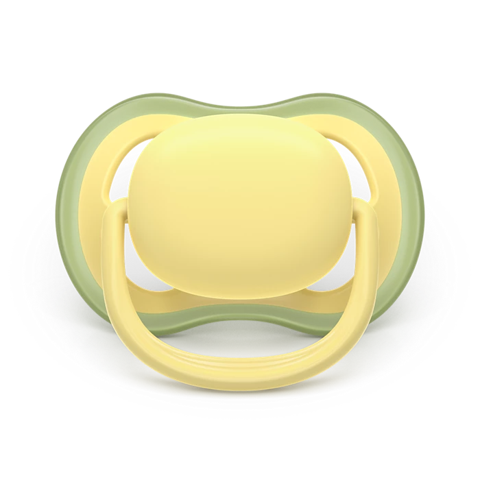 Extra-large airholes let baby's skin breathe Holes in the shield ventilate your baby's skin, keeping it drier for ultimate soothing comfort. Orthodontic teat designed for natural oral development Our orthodontic teats are designed using soft silicone to support natural mouth muscle movements to help lower the risk of malocclusion. The narrow neck teat is designed to reduce pressure between the tongue and palate. Philips Avent ultra Soothers are independently accredited by the Oral Health Foundation. Made from 100% food-grade silicone, they are more durable and long-lasting than rubber (latex) teats and are free from BPA, BPS, phthalate, PVC and polycyclic aromatic hydrocarbons. Loved by babies with a 98% teat acceptance Our textured silicone teats are designed to mimic the feel of mum's breast. When we asked parents how their little ones respond to them, an average of 98% said their babies accept Philips Avent ultra soft soothers.