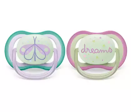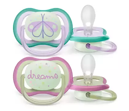 Körpələr üçün nəzərdə tutulmuş Philips Avent əmziyi körpələri sakitləşdirməyə kömək edir. Tamamilə elastik tibbi dərəcəli silikondan hazırlanmış davamlı bir dizayn. Xüsusi əyri, ürək formalı qalxan körpənizin üzünün təbii əyrilərinə uyğunlaşmaq üçün nəzərdə tutulmuşdur. Onun kiçik burnuna dəymədən maksimum rahatlıq təmin edir. Əmzik\ ultra air soother nighttime, 0-6m, 2-pack, deco girl