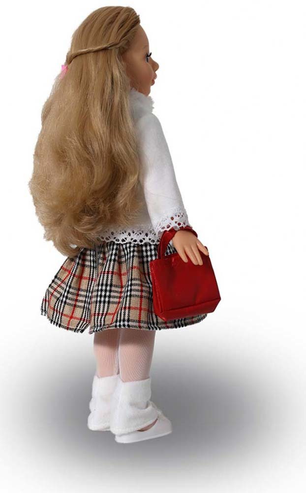 Куклу "Эсна 3" отличает новый образ. Это кукла-девочка с интересным лицом, открытым взглядом, пушистыми ресницами, роскошными волосами. Кукла может закрывать глаза, ее можно укладывать спать. Продуманная конструкция позволяет легко сажать куклу, ставить на ножки, переодевать. Глаза вставные закрывающиеся. Прекрасные длинные волосы, похожие на натуральные, можно завивать, расчесывать и укладывать в разные прически, меняя образ куклы. Аксессуар-сумочка помогает разнообразию сюжетно-ролевых игр с куклой и развитию детской моторики. В комплект одежды коллекции входит: платье из костюмной клетки, отрезное по линии бедер, без рукавов и воротника, с застежкой сзади на "Велкро". Куртка из флиса с воротником-стойкой из искусственного меха, с длинными рукавами, застежкой спереди сверху на "Велкро". По низу куртки и низу рукавов настрочено вязаное кружево. Гетры из флиса с бантиками. Колготки из сетки-стрейч. Сумка из искусственной кожи с застежкой на липучку крепится к руке куклы атласной лентой. Комплект дополнен туфлями. Кукла соответствует Техническому регламенту Таможенного Союза о безопасности детской игрушки. Рекомендуем!