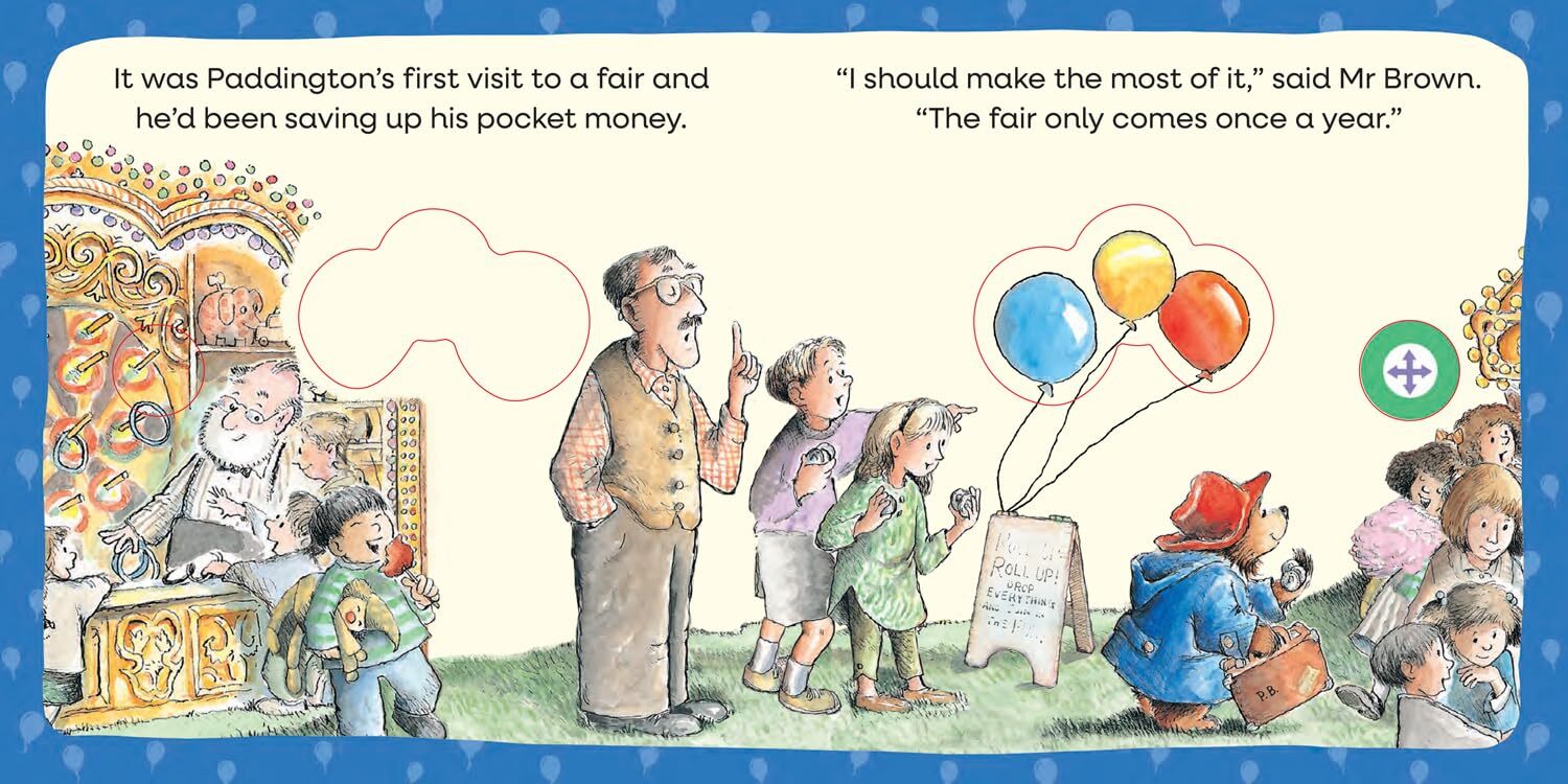 Come and join the Paddington bear for a fun-filled day at the fair! Move the sliders in this pull, slide and play book and watch him slide down the helter-skelter, jet off on the Rocket Rollercoaster … and more!