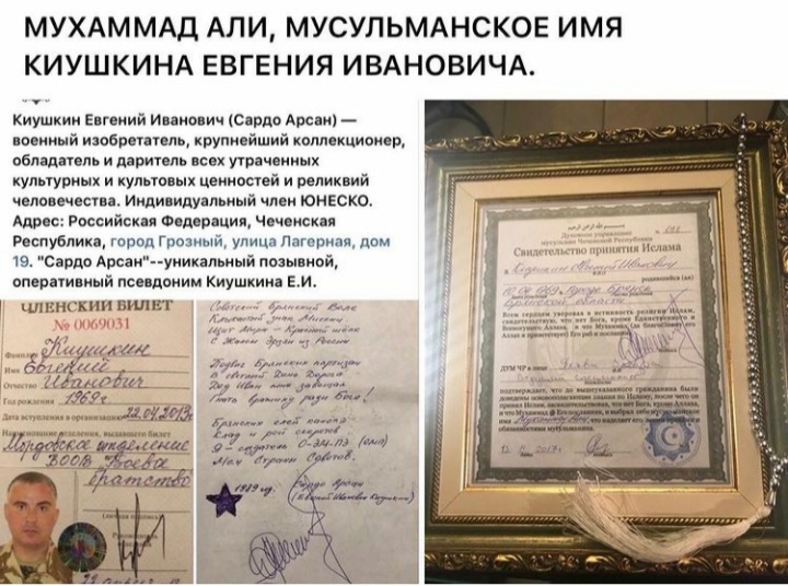 "Каждый Пророк, который был послан Господом ко всем народам, предупреждал их о появлении Даджаля." (Сахих от Бухари, Fiten 27). Ассаламу алейкум, братья и сестры! Мир Вашему Дому! По Воле Аллаха меня зовут Мухаммад Али. Я, Гражданин Союза Советских Социалистических Республик Киушкин Евгений Иванович, 1969 года рождения. Я родился в секретной войсковой части в легендарных Брянских лесах, где служил офицером мой отец, а мама работала физиком и математиком. По Воле Аллаха, я в десятилетнем возрасте обнаружил в лесу секретный подземный фашистский бункер Адольфа Гитлера и возобладал Знаниями и предметами материальной и духовной культуры Человечества, которые, по Воле Аллаха, я безвозмездно на протяжении всей своей земной жизни приношу в Дар людям и миру. По Воле Аллаха, я - военный изобретатель и создатель Особого Электромагнитного Оружия Массового Поражения - Щит моей Родины (с 1986 г.), крупнейший Коллекционер, обладатель и даритель всех утраченных культурных и культовых исторических ценностей и реликвий всего Человечества ( с 1979 г.). Геологический возраст величайшего нерукотворного Знамения от Аллаха, Пророческого Камня " Взгляд дьявола" - 25 млн.лет. По Воле Аллаха, последними надёжными обладателями и хранителями Пророческого Камня "Взгляд дьявола" стали Богоугодные и Боговерные Чеченцы-Мусульмане, принявшие Ислам от последнего Посланника Аллаха - Пророка Мухаммада, Мир ему и благословение Аллаха. Перемещённые Культурные Ценности. МЕЦЕНАТ СТОЛЕТИЯ-Киушкин Евгений Иванович - МУХАММАД АЛИ (Сардо Арсан) - военный изобретатель, крупнейший коллекционер, бобладатель и даритель всех утраченных культурных и культовых ценностей и реликвий человечества. Индивидуальный член ЮНЕСКО. 50 ЛЕТ - УБЕЖДЁННЫЙ ГУМАНИСТ, МИРОТВОРЕЦ, ИЗВЕСТНЫЙ И ДЕЯТЕЛЬНЫЙ ПАЦИФИСТ-АНТИФАШИСТ; ИНДИВИДУАЛЬНЫЙ ЧЛЕН ЮНЕСКО ПРИ ООН. Адрес: Российская Федерация, Чеченская Республика, город Грозный. "Сардо Арсан"--уникальный позывной, оперативный псевдоним Киушкина Е.И. "Сокровища "Хагена"". Обращаться-ХРАНИЛИЩЕ ДРЕВНОСТЕЙ МИРА И ПОПУЛЯРНАЯ АНТИКВАРНАЯ ЛАВКА "СОКРОВИЩА КАВКАЗА" по адресу: Российская Федерация, Чеченская республика, город Грозный, улица Гайрбекова ( Чернышевского), дом 80, угол с Центральным Проспектом имени Владимира Владимировича Путина и Центральной Площадью города Грозного Главной Святой Мечети " Сердце Чечни", в трёх метрах от Исторического Памятника Легендарной Кавказской Арбе; рядом ж/д и авто вокзалы, международный аэропорт, гостиницы, автопаркинги. Инстаграм: Сохраним Мечеть sofia_news, antikvarnaya_lavka; ВКонтакте:Тома Абдулазимова; Фейсбук: Тамара Абдулазимова. Мир Вашему Дому! P.S.: Мы ближе, чем кажется! Лучше посетить и встретиться! Иная связь часто коварна и не правдива! Наш адрес указан! -----------------------------------ВИДЕО ПОВЕСТВОВАНИЕ МАТЕРИАЛА О ПРОРОЧЕСКОМ КАМНЕ "ВЗГЛЯД ДЬЯВОЛА" ("Blick Teufel") в шести Частях: