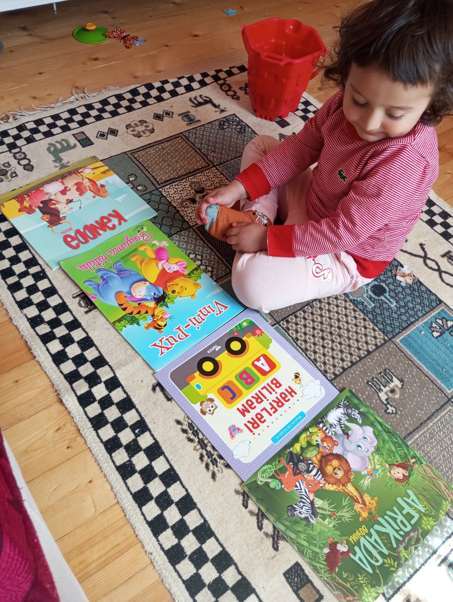 Qızim hal hazırda çooxx xoşbərtdir. Çünki yeni kitabları gəlib. Təşəkkürlər Ali və Nino! Çox gözləməli olmadır. Dünən gecə sifariş vermişdik. Bu gün səhər gəldi kitablarımız.