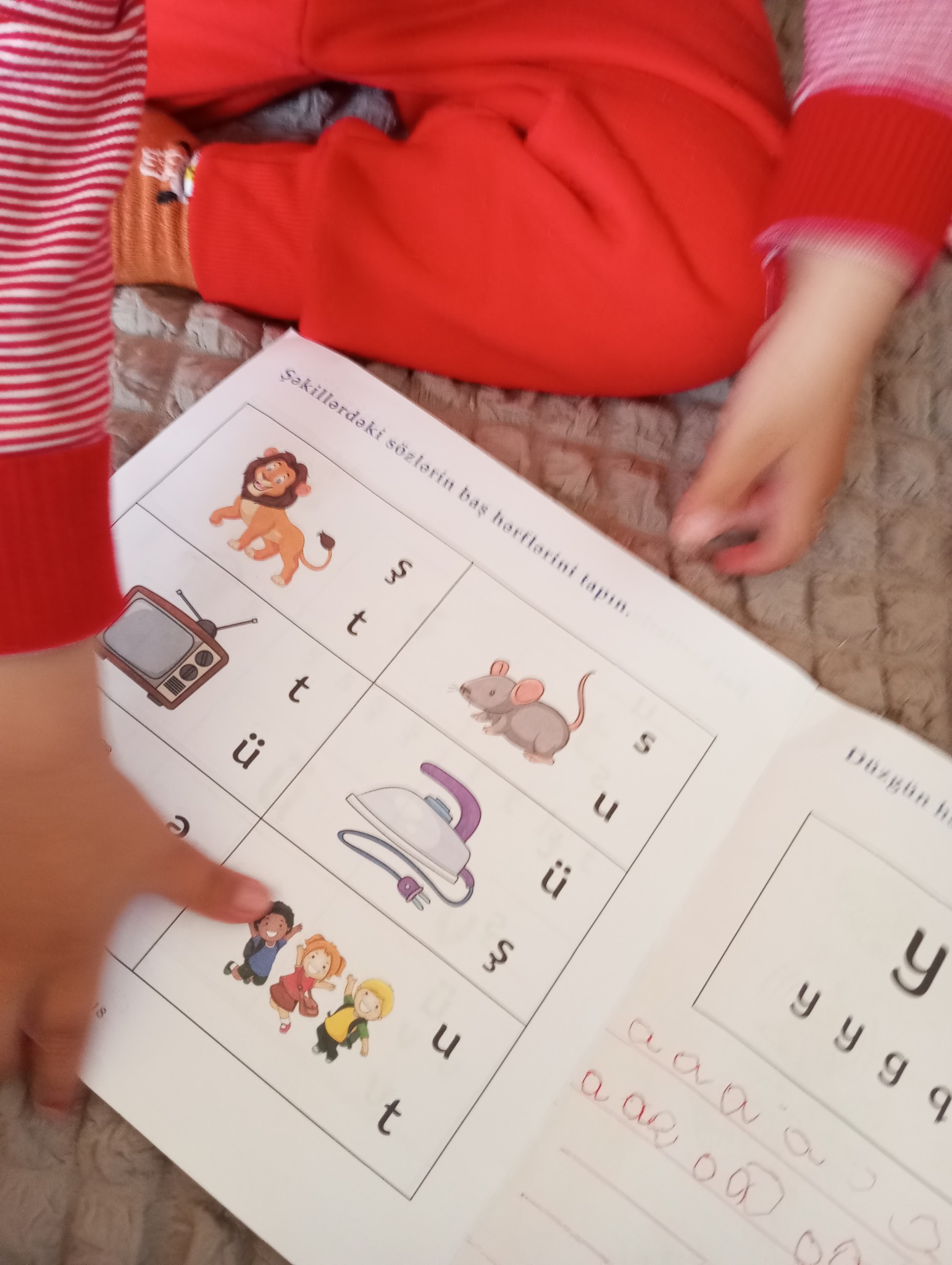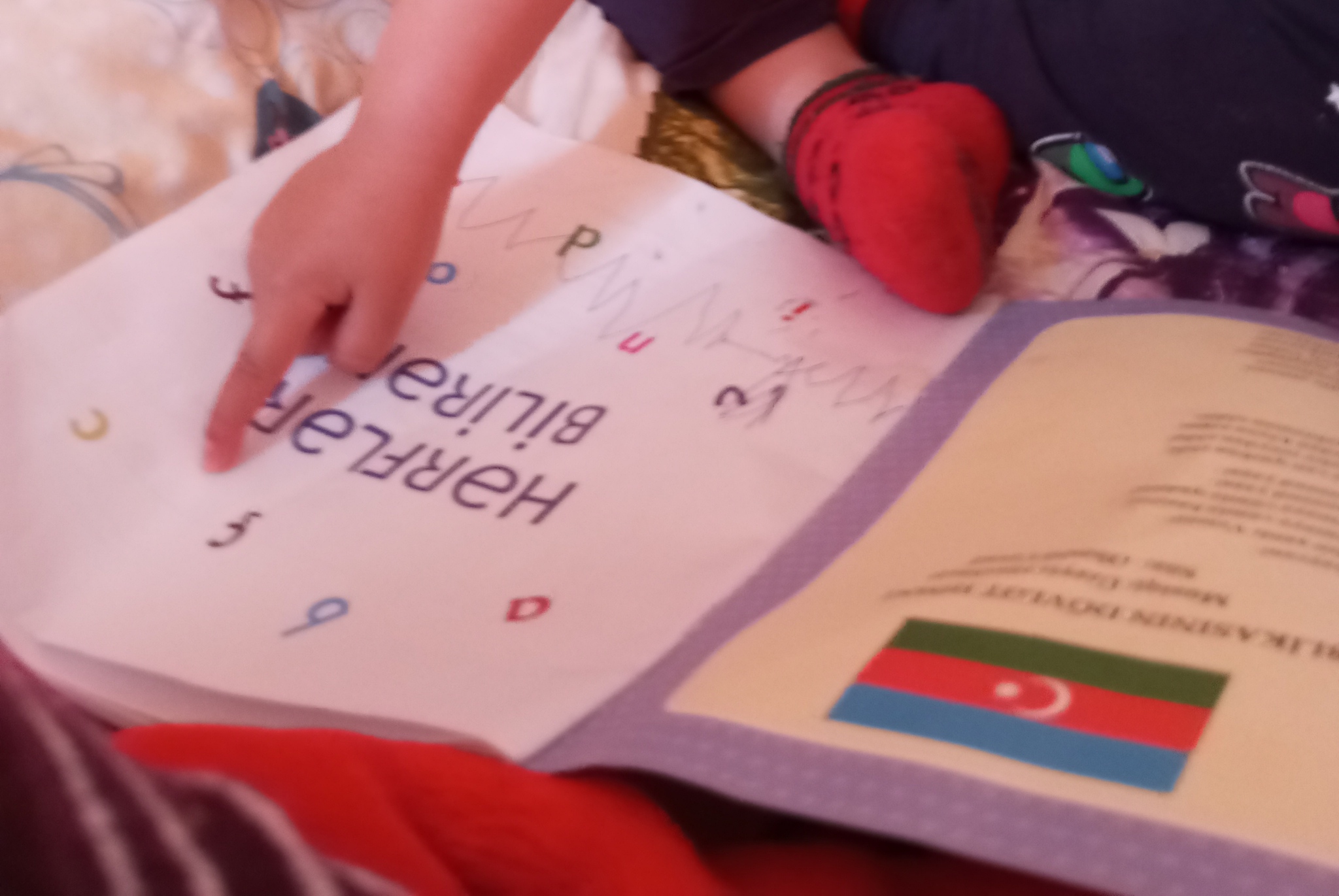 Bizim dərs saatımız başladı! Hər gün bir saat qızıma əlifbanı öyrədirəm. Dör yaşı artıə hərfləri tanıyır. Kitbın içində şəkillərdə var. Öyrətmək asan olur. Uşaqda tez qavrayır öyrətdiklərimi. Valileyinlər, yaxşı ktabdı sizədə məsləhət bilirəm. Uşaqlara məktəbə getməmiş hərfləri öyrətmək önəmlidir.
