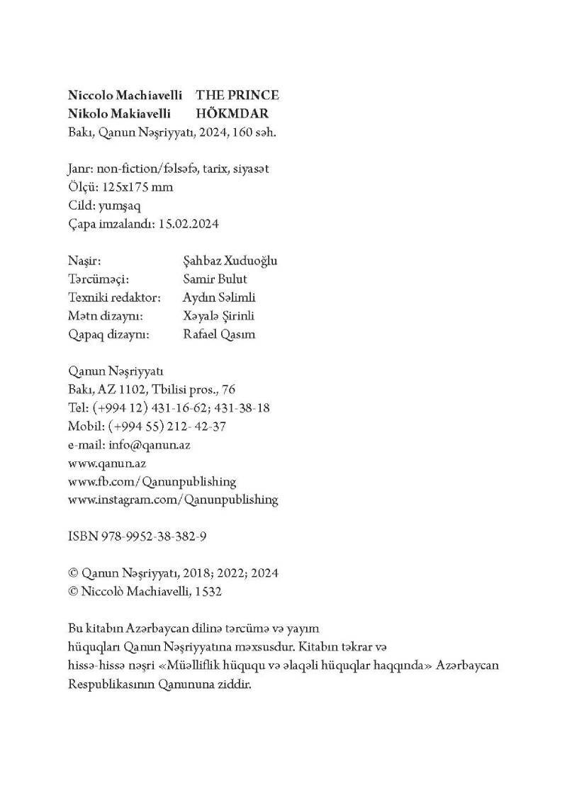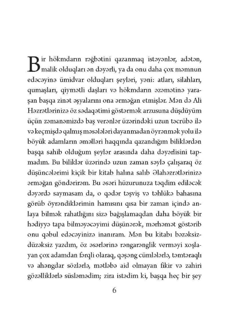 “Hökmdar” – İntibah dövrünün florensiyalı dövlət xadimi Nikolo Makiavellinin ən mühüm və ən mübahisəli əsəridir. Bu əsər işıq üzü gördükdən sonra siyasətdə ikiüzlülüyü, həyasızlığı, özbaşınalığı bildirən “makiavelizm” termini meydana çıxdı. Uzun illər bu kitab “zəhər və xəncər” siyasətinin əsası kimi şöhrət qazandı. Lakin müəllifin müasir dövrdə öz tətbiqini tapan bir çox fikirləri təbii hal kimi qəbul olundu.