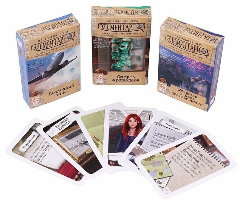 Элементарно! – это кооперативная игра-детектив, в которой вам нужно раскрыть преступление всем вместе при помощи информации на картах. Анализируйте полученные сведения, открывайте нужные карты и сбрасывайте те, которые, по вашему мнению, не имеют отношения к делу.
