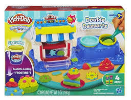 В Игровой набор "Двойные десерты" входит 4 мягких цветных пластилина. По качеству очень хорошие, яркие, руки не пачкают. Также входит лопатка, ложечка, шприц кондитерский для украшения, 2 маленькие тарелочки, 3 формочки фигурные для изготовления тортиков. Также в набор входит плита со звуковым эффектом, на самой плите также есть формочки для изготовления различных фигурок, для украшения готовых тортиков. Очень интересный набор! Девочкам очень понравится!
