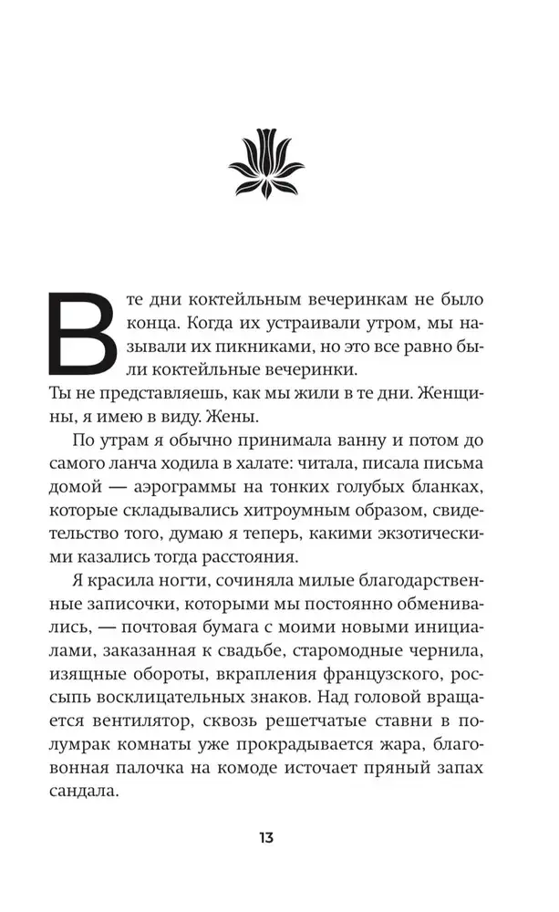 Захватывающий рассказ о жизни женщин на обочине вьетнамской войны. Американки, жизнь которых оказалась связана с Вьетнамом, пусть и на недолгий срок, всегда были персонажами второго плана, массовкой в литературе о войне во Вьетнаме, но в романе Элис Макдермотт они в центре. Это история о женщинах, ставших невольными свидетельницами огромных и трагических событий. Триша — застенчивая новобрачная, которая вышла замуж за подающего надежды инженера, работающего в военно-морской разведке. Шарлин — опытная “корпоративная” супруга и мать троих детей. В Сайгоне эти две женщины образуют осторожный союз, обе — домохозяйки и помощницы своих мужей, но обеих волнует судьба Вьетнама, и они готовы “творить добро” для вьетнамцев. Шестьдесят лет спустя дочь Шарлин, вдохновленная встречей со стареющим ветераном Вьетнама, связывается с Тришей. Вместе они оглядываются на то время в Сайгоне, иронично оценивая поворотный 1963 год и место женщин в те дни — на периферии политики, истории, войны, убеждений их мужей. Виртуозный роман Элис Макдермотт, одной из самых наблюдательных и самых гуманистичных писательниц, — о глупости и благодати, об обязательствах и жертвах, об искуплении вины в сломанном мире.