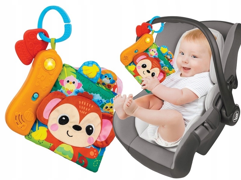 Книга со светом и звуками, к ней прилагается резиновый прорезыватель, который можно удобно отсоединить или прикрепить книгу к автокреслу или дивану.