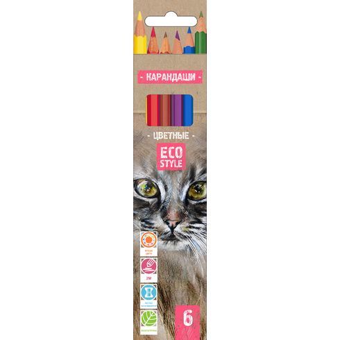 Карандаши восковые, шестигранные 8х90, 6 цветов