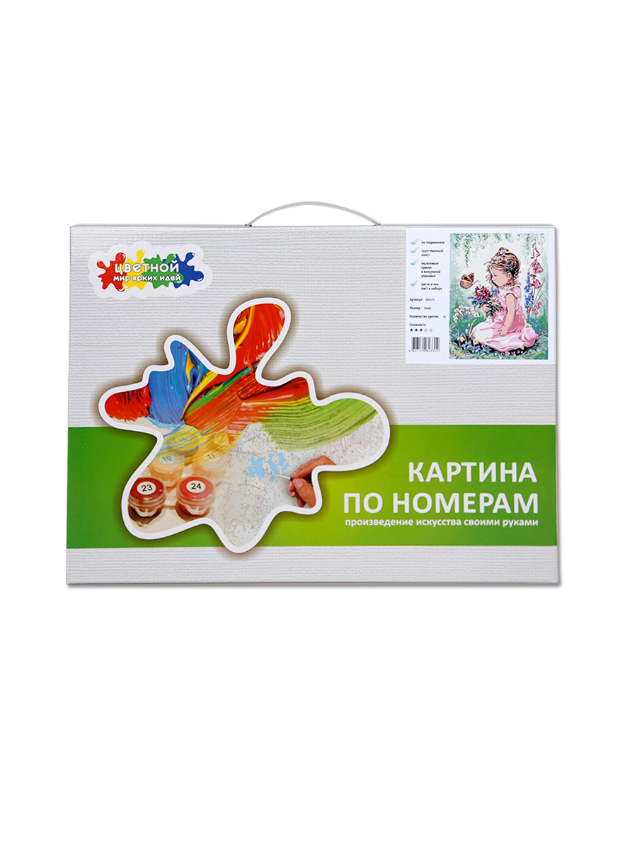 Картина по номерам от ТМ Цветной комплектации Стандарт. В набор входит: хлопковый холст на деревянном подрамнике, акриловые краски в вакуумной упаковке, крепление на стену, удобная коробка с ручкой, 3 нейлоновые кисти c пластиковой ручкой, черно-белая печать областей с цифрами на холсте. Преимущества: 1. Натуральный хлопковый холст, натянутый на деревянный подрамник из высушенной сосны. 2. Галерейная натяжка холста без волн и провисаний. 3. Акриловые краски упакованы в вакуум, что позволяет хранить и транспортировать без ограничения температуры. Краски не теряют своих свойств не высыхают и не портятся.