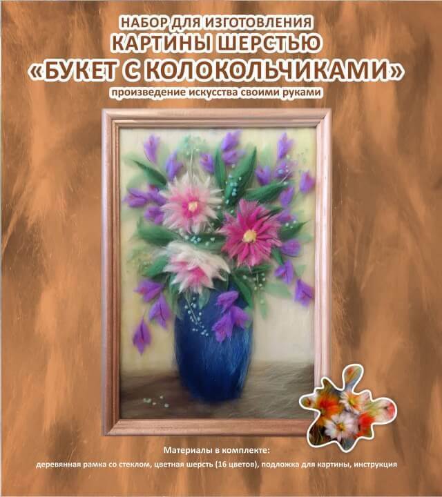 Картина шерстью "Букет с колокольчиками" Цветной, цвет разноцветный, размер 200x300 мм