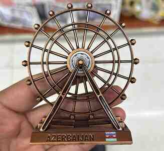 Qızılı-mis tonlarında işlənmiş bu elegant suvenir, klassik çarx formasında dizayn olunaraq, alt hissəsində Azərbaycan bayrağı ilə milli ruhu əks etdirən estetik bir kompozisiya yaradır.