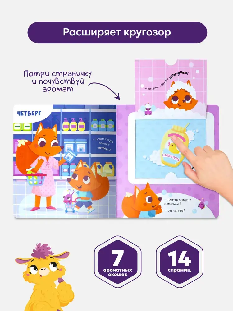 Детская книга с ароматными страницами «Чем пахнет неделя» — уникальный способ познакомить малыша с миром через органы чувств. Каждая страница, связанная с днём недели, раскрывает новый запах: от свежести утра до уютного вечера. Прочный твёрдый переплет и безопасные материалы идеально подходят для детских игр и первых прикосновений.