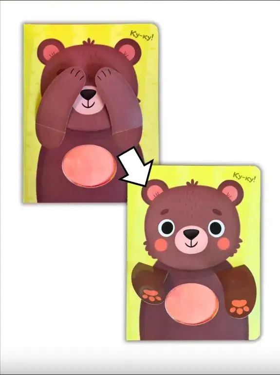 С этой книгой вы сможете поиграть с малышом в весёлую игру-прятки «Ку-ку!» и загадать ему загадки.