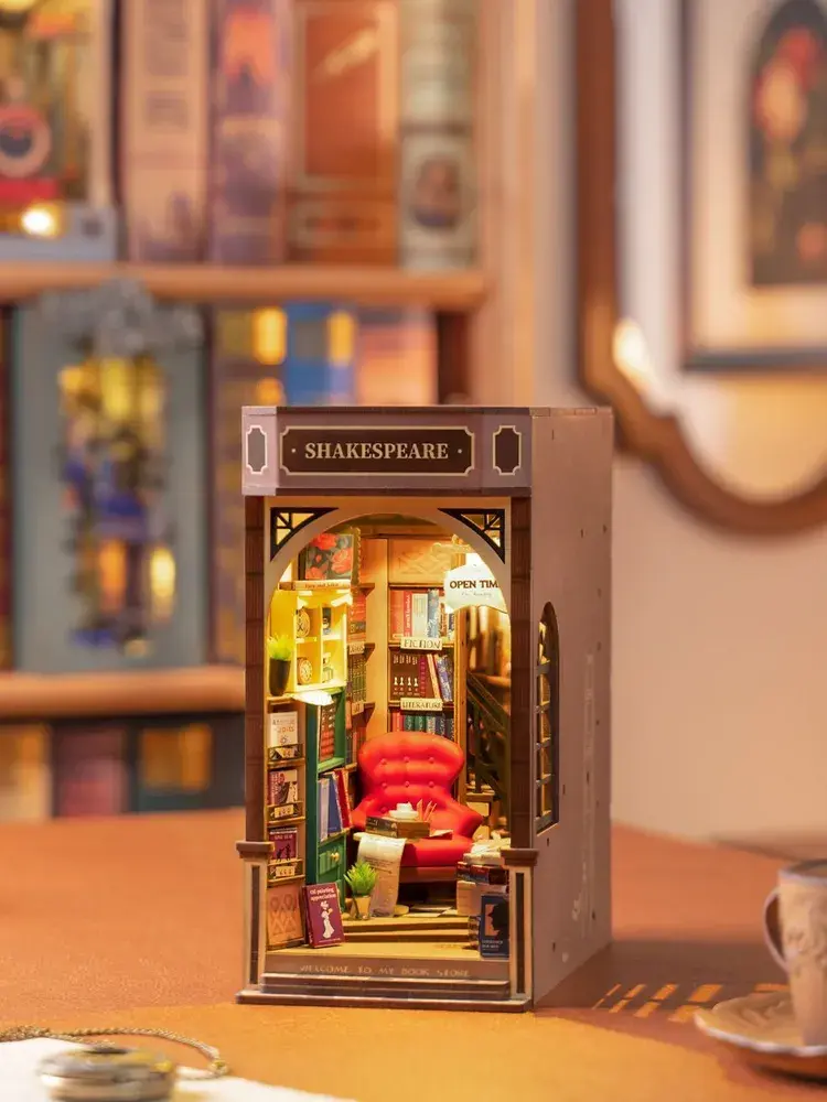 ROBOTIME DIY Book Nook Kit вдохновлен знаменитой «Книжной лавкой Шекспира» во Франции, создавая реалистичную и винтажную атмосферу, которая источает вневременную элегантность. Классика никогда не выходит из моды. Размер модели: 7,9x4,5x8,7 дюймов.