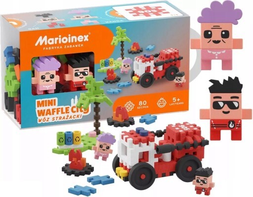 Это был еще один хороший день в Вафл-Сити. Госпожа Ванда возвращалась с прогулки и направлялась к площади, ведущей к ее квартире. Внезапно ее поразил сильный запах дыма. Она испугалась и увидела, что вокруг мусорного бака горит огонь. В ту же секунду она потянулась к телефону и позвонила в пожарную службу. Пожарная машина, оснащенная водометом под командованием пожарного Сэма, справилась с огнем за несколько мгновений. Именно поэтому в каждом городе должен быть свой героический пожарный. Постройте пожарную машину, с помощью которой вы сможете потушить любой пожар. Украсьте городок Вафл-Сити с помощью площади, пожарной машины и двух оригинальных персонажей — миссис Ванды и пожарного Сэма. Постройте надежную пожарную машину и используйте блоки, имитирующие воду, чтобы потушить опасное пламя и защитить госпожу Ванду. И это, конечно, не единственное вмешательство, которое предпримет пожарный Сэм. Создавайте свою историю играя и развивайте воображение ребенка – в том числе пространственное.