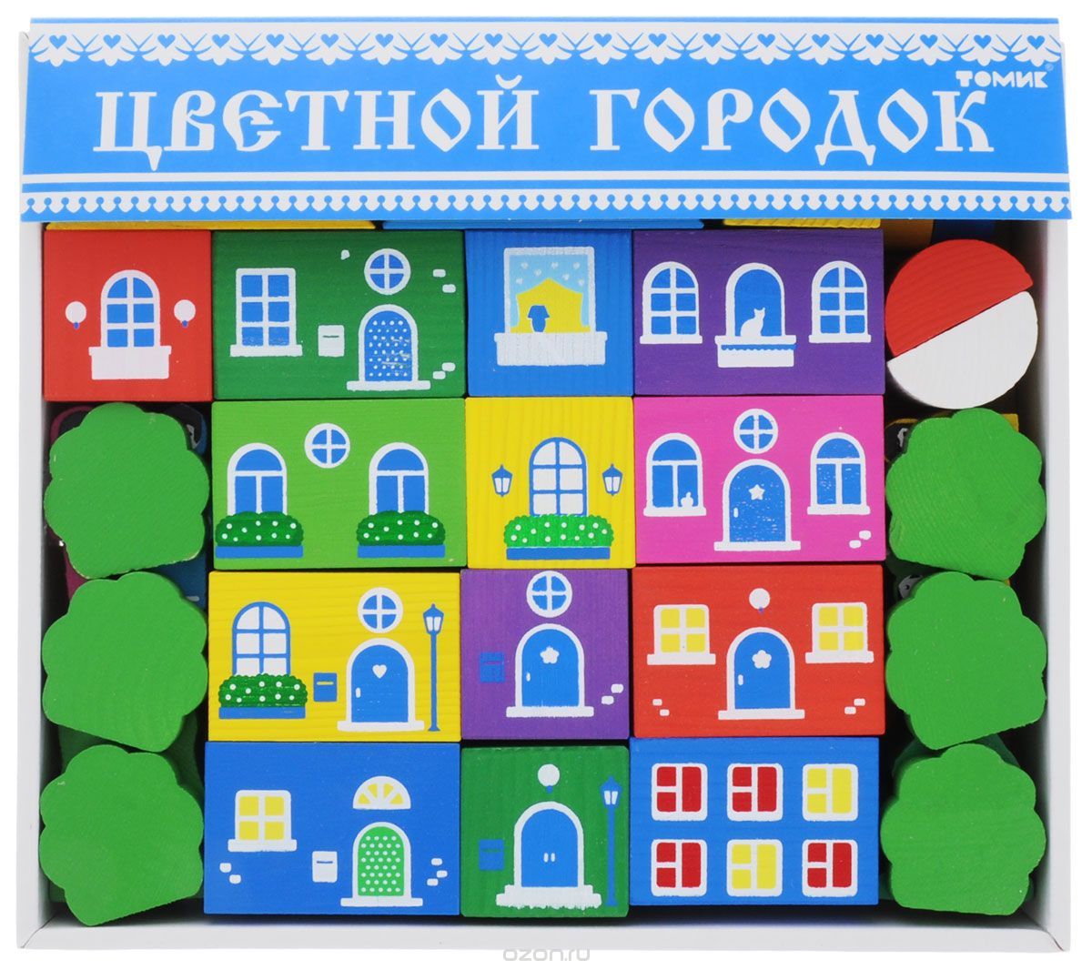 Конструктор Томик "Цветной городок" - очень яркий конструктор для создания городка и ролевых игр с ним. Все элементы изготовлены из экологически чистого дерева, краски не токсичные и прочные. Включает в себя конструктор 41 элемент.В этом замечательном конструкторе есть все, для того, чтобы построить городок - различные домики, деревья, машинки и фигурки человечков. На домиках нарисованы окошки различных форм, шторки и цветочки на подоконниках. Малыш сможет не только построить целый город, но и как настоящий волшебник наполнить его жизнью.Игра с данным конструктором развивает пространственное мышление, фантазию, умение использовать форму предмета, моторику, координацию, приучает ребенка к усидчивости.