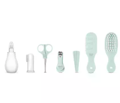 SCH401 körpəyə qulluq dəsti ilə siz körpənizə ən yaxşı qayğını göstərə bilərsiniz. Kompakt dəstdə yumşaq burunlu burun aspiratoru, barmaq diş fırçası, dırnaq və saça qulluq dəsti daxildir.