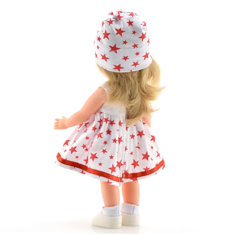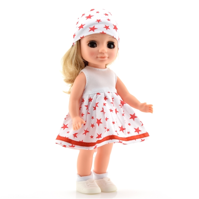 Кукла Ася станет лучшей подружкой для вашей девочки. Ее выразительные, широко распахнутые глаза и обаятельная улыбка создают образ доброй и нежной малышки. Кукла представлена в летнем комплекте одежды. Элегантное и милое платье, отстроченное тесьмой по подолу. Подобранные в тон шапочка, носочки и туфельки.
