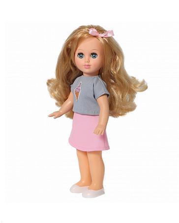 Трогательная блондинка по имени Алла решила отправиться с подружками на прогулку, поэтому выбрала стильный повседневный образ с яркой юбочкой и серой кофточкой. Маленькая модница дополнила его розовой повязочкой, которая делает пышные локоны игрушки еще более привлекательными.