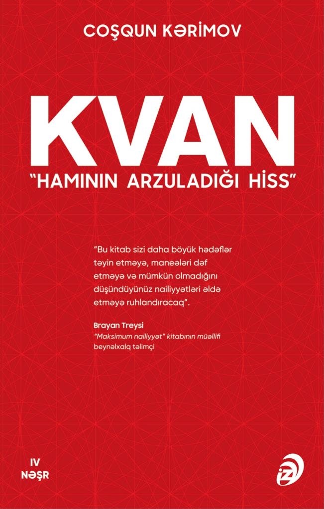 “Bu səyahətdə təhlükəsizlik kəmərini bağlamağa ehtiyac olmayacaq”. “Discovery Azerbaijan” jurnalı KVAN – həyatının işi ilə məşğul olan və bundan həzz alan insanın yaşadığı sevinc hissidir. Bu kitab sizin daxili səyahətinizdə bələdçi rolunu oynayır. Daxili motivasiya üçün 7 mühüm sualı müəlliflə birgə cavablandırırsınız. “Həyatımız boyu bizə iki damğa vurulur. Biri uşaqlıqda ailə, məktəb və çevrə tərəfindən vurulur. Digərini isə özümüz vururuq. İkinci damğa bizim qərar nəticəsində vurulur və o bizə KVANı bəxş edir”. Coşqun Kərimovun müştəri xidmətləri, satış və təqdimat bacarıqları üzrə çoxillik təlimçilik təcrübəsi var. Dünyanın top-5 təlimçisindən biri olan Brayan Treysidən satış və natiqliklə bağlı master-klass alıb. “GR8”, “VitalCV” və “Manads” layihələrinin həmtəsisçisi olub.