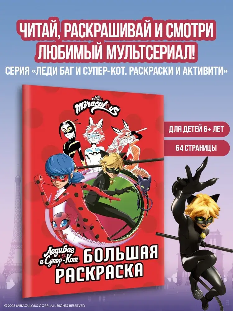 Множество сюжетов, любимые персонажи, крупные иллюстрации и любопытные факты о невероятных способностях Чудесных — что еще нужно поклонникам Леди Баг и Супер-Кота, чтобы провести отлично время? Запасайтесь карандашами и фломастерами и раскрашивайте любимую мультивселенную!