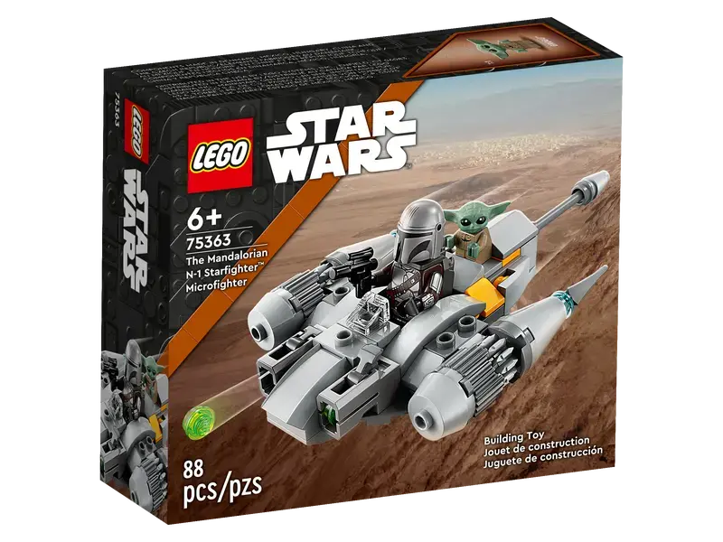 Набор LEGO Star Wars Microfighter (75363) для быстрой сборки – пробудите детское творчество с помощью сборной микромасштабной модели истребителя N-1 из сериала «Мандалорец», впервые показанного в фильме «Звёздные войны: Книга Боба Фетта».