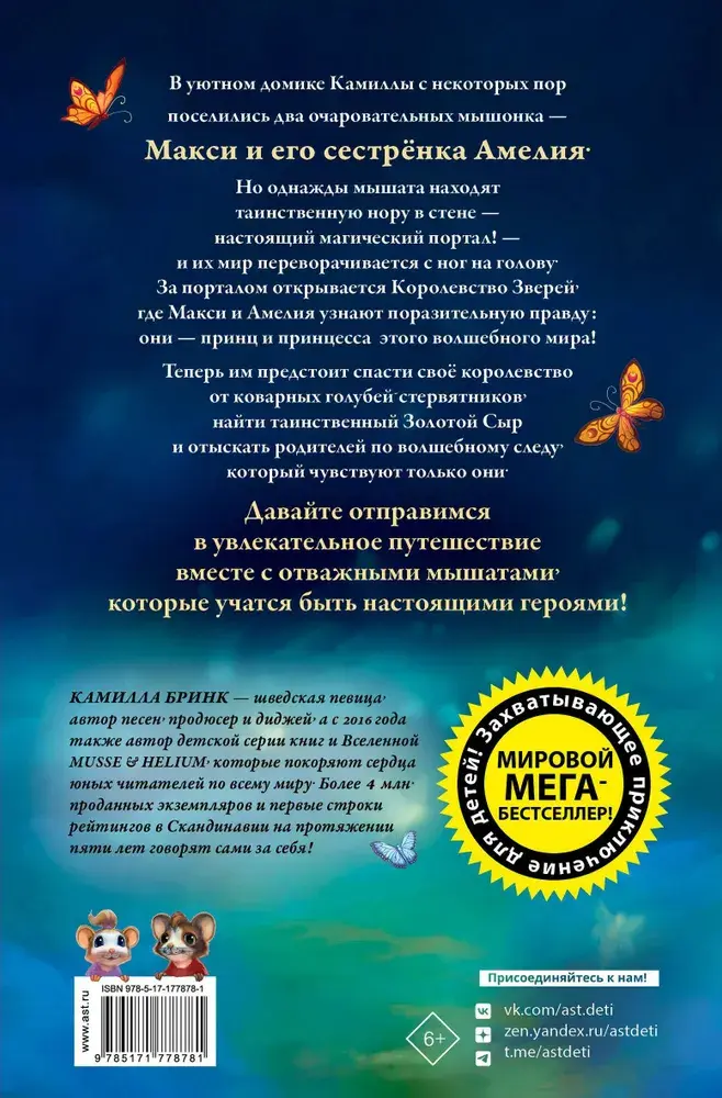 КАМИЛЛА БРИНК — шведская певица, автор песен, продюсер и диджей, а с 2016 года также автор детской серии книг и Вселенной Musse & Helium, которые покоряют сердца юных читателей по всему миру. Почти 4 млн. проданных экземпляров и первые строки рейтингов в Скандинавии на протяжении пяти лет говорят сами за себя!