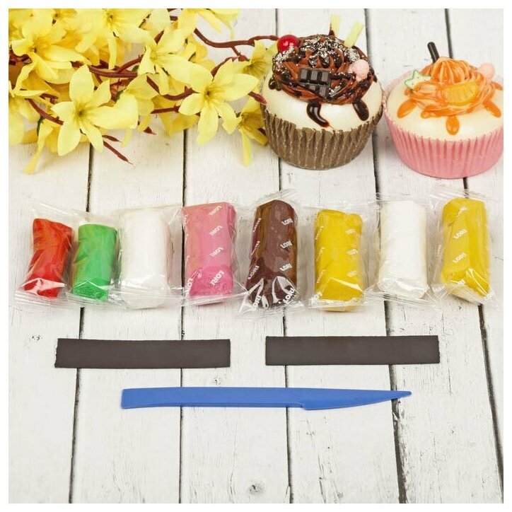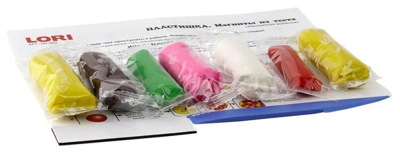 В наборе: тесто для лепки, магнитная лента, стек, цветная инструкция.