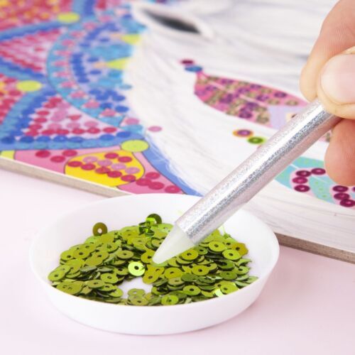 С 6 разными пайетками, которые крепятся к шаблону с помощью соответствующей «палочки».