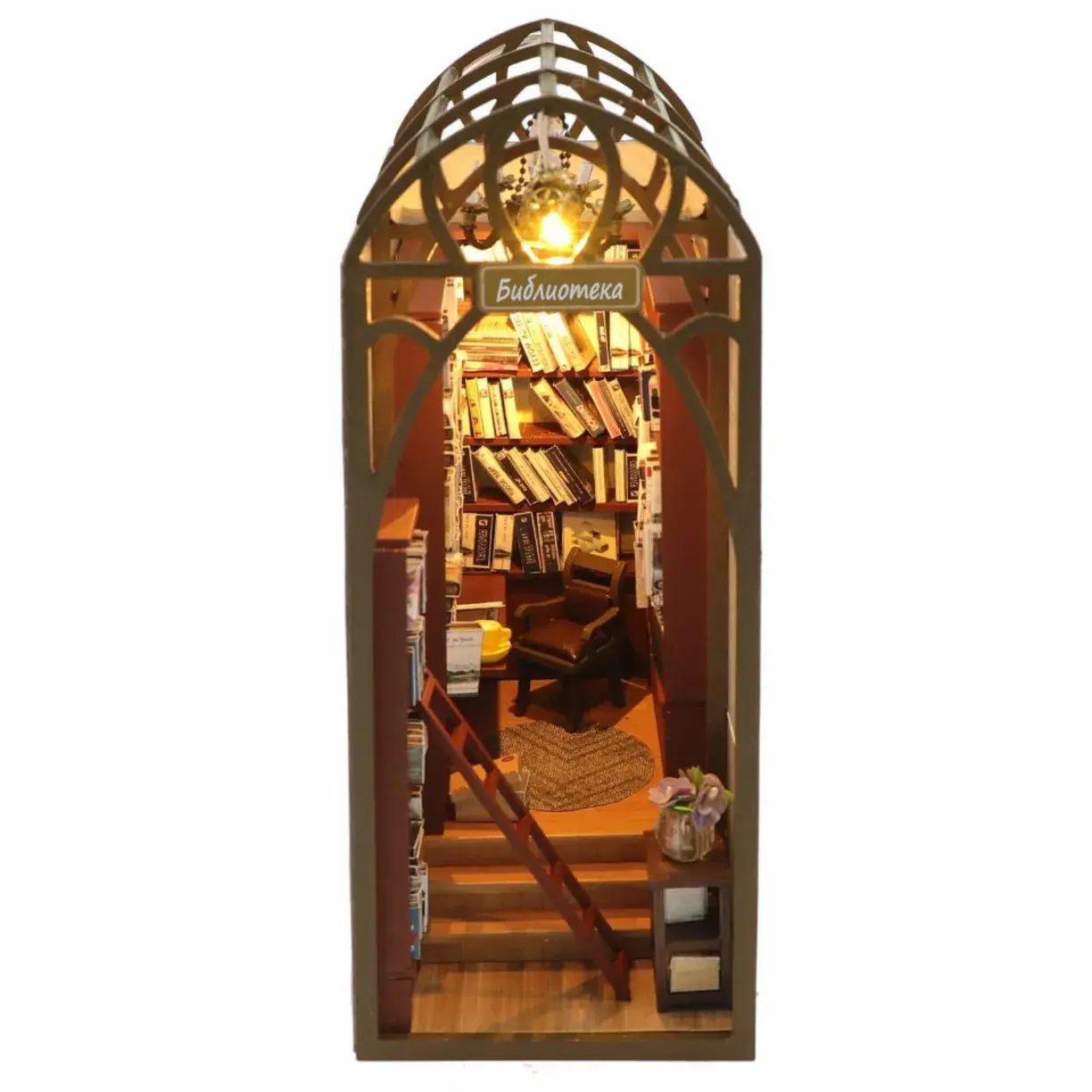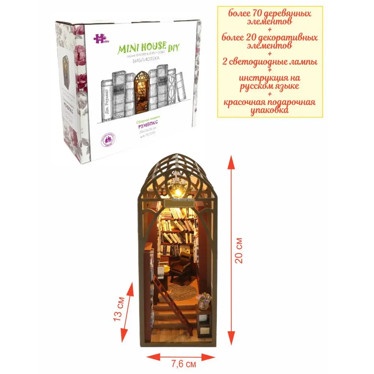 Румбокс. Интерьерный конструктор. "Серия книжный румбокс: Библиотека". - Это уникальная серия румбоксов, которая может использоваться как самостоятельный румбокс, и как румбокс играющий роль подсветки в вашей библиотеке. Собранный румбокс можно расположить между книжек и создать уютную атмосферу в библиотеке, читальном зале или в гостинной. Румбокс "Серия книжный румбокс: Библиотека" от официального дистрибьютора Hobby Day. Товар полностью русифицирован. Интерьерный конструктор "Серия книжный румбокс: Библиотека" - это готовый набор для творчества, внутри которого вы найдете все необходимое, чтобы воссоздать собственными руками кукольный интерьер в миниатюре. Все детали и элементы невероятно реалистичны, а собранный румбокс непременно вызывает восторг! Румбокс, станет прекрасным подарком для всех любителей интерьерных конструкторов. Только румбоксы от компании Hobby Day упакованы в яркую, подарочную упаковку с нанесением логотипа. Hobby Day - это русифицированный продукт, с гарантией и сертификатом качества. Приобретайте официальные товары, остерегайтесь подделок! *Страна производитель: Китай *Бренд: Hobby Day *Серия: DIY Mini House Книжная *Возраст: 10 - 12 лет (от 10 лет с помощью взрослого, от 12 лет самостоятельная сборка) *Пол: Унисекс *Тип игрушки: творческая и развивающая *Упаковка: красочная картонная коробка *Состав: Детали изделия, русская инструкция, светодиоды (комплект для освещения) инструменты. *Материал: Дерево, Ткань, Пластик, Картон *Размер в собранном виде см: 19.8*7.6*13.3 *С подсветкой.
